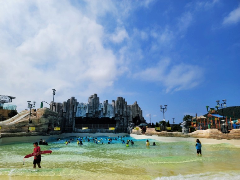 실외의 파도풀의 경우, 아이들이 아직은 바다에서 수영을 할 수 있는 편이 아니다 보니 오히려 이런 풀이 외곽에서 논다면 아이들이 즐겁게 이용할 수 있어 보였습니다.