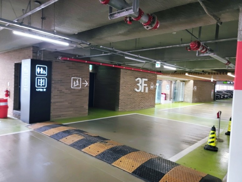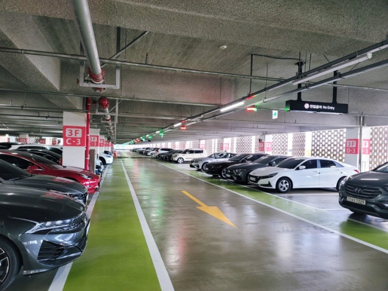 4층까지 올라가지 않아도 3층에도 자리가 넉넉해 쉽게 주차를 할 수 있었고 주차장 내부의 깔끔함과 각 주차하는 곳마다 넉넉한 공간이 맘에 들었습니다.